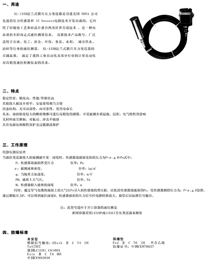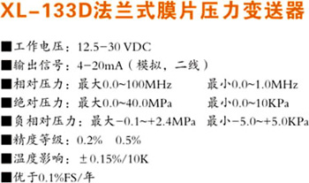 XL-133D法蘭式膜片壓力變送器