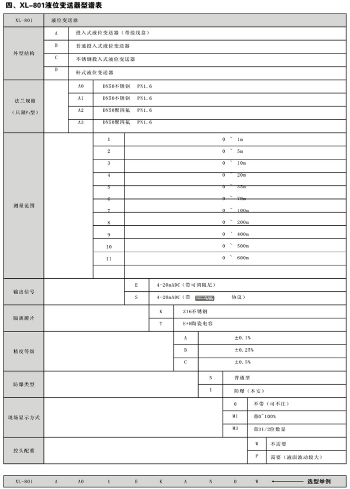 XL3051GW單晶硅單遠(yuǎn)傳液位變送器