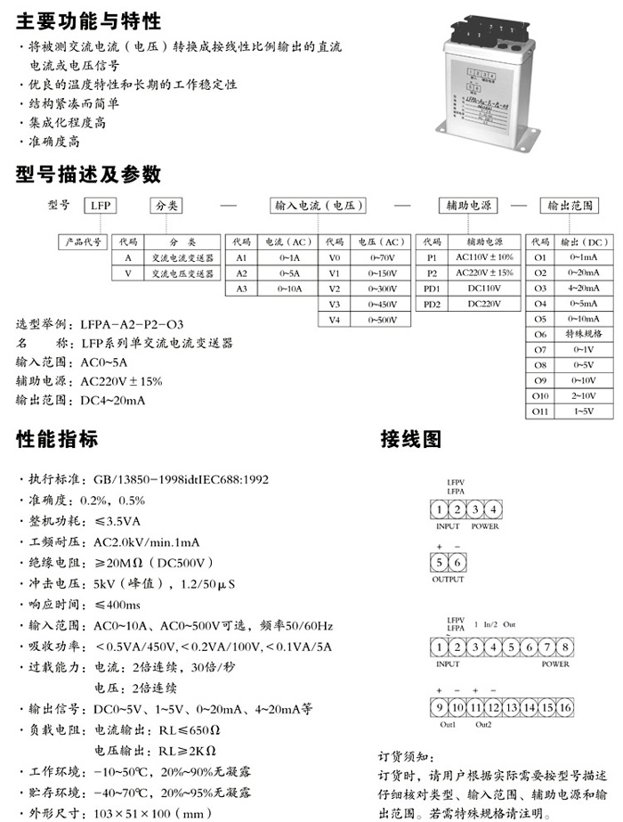 LFP系列有功(無功)功率及功率因數(shù)變送器