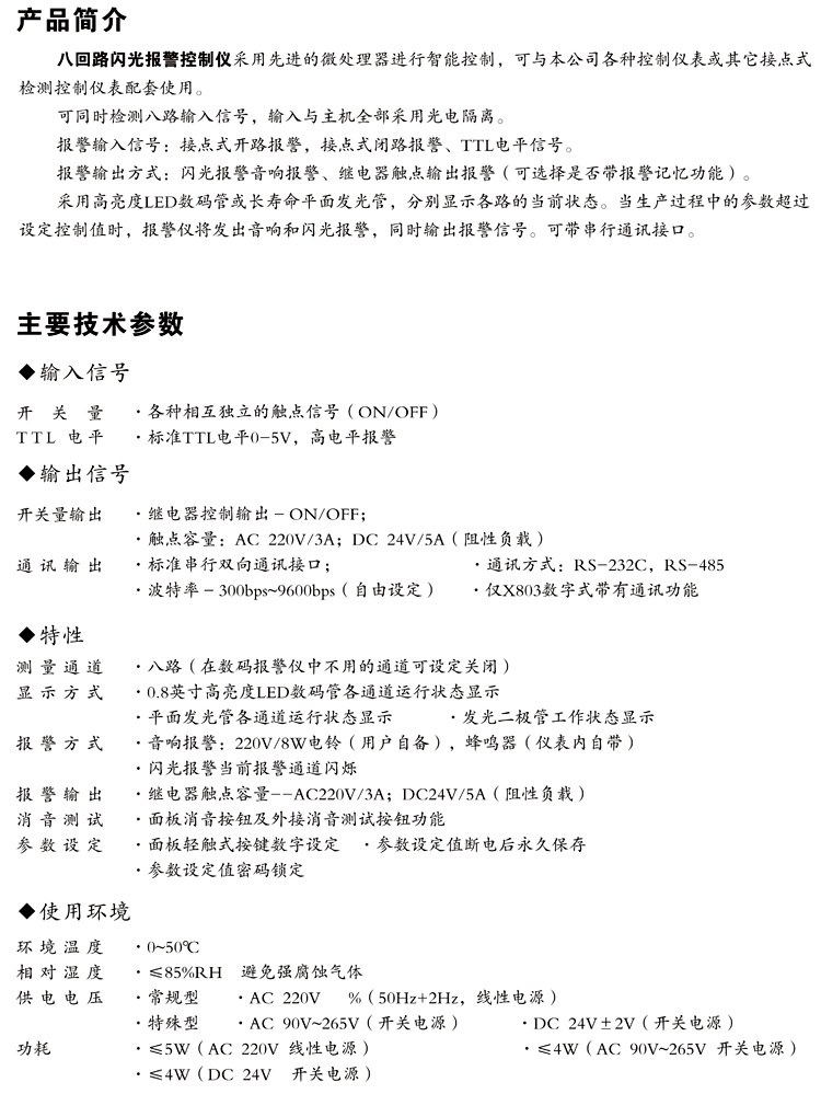 XWP-X803系列八回路閃光報警控制儀