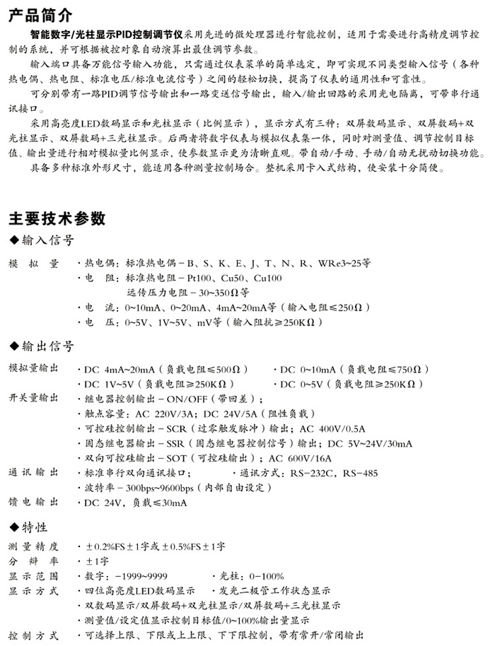 XWP-NT805/NT815/NT825系列智能PID控制調節儀